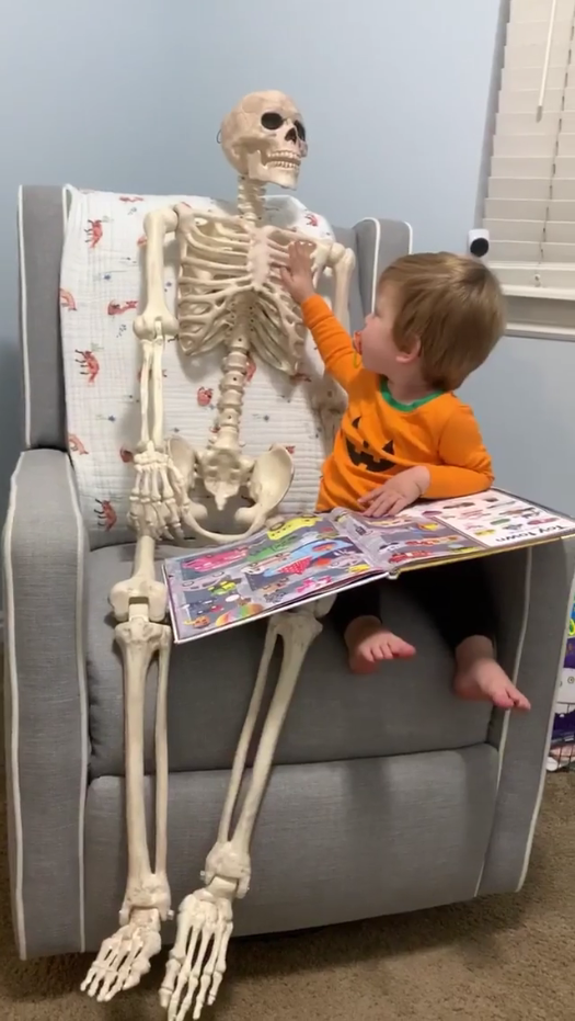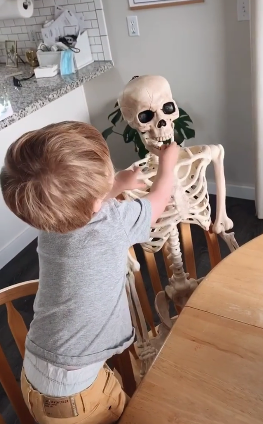 【橙訊】每個小孩子總有一件心愛的玩具,不過有誰會料到一個2歲小童居然會相中一副骷髏骨頭?來自美國猶他州的Abigail Brady,近日在網上分享了兒子Theo與骨頭「好友」的生活照,引發大批網民討論。