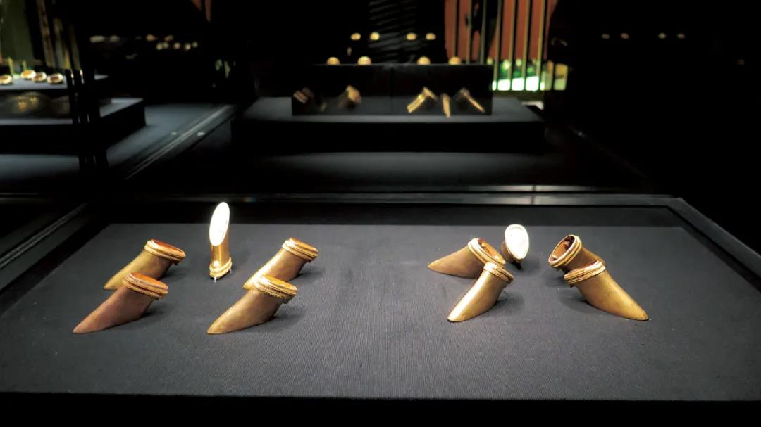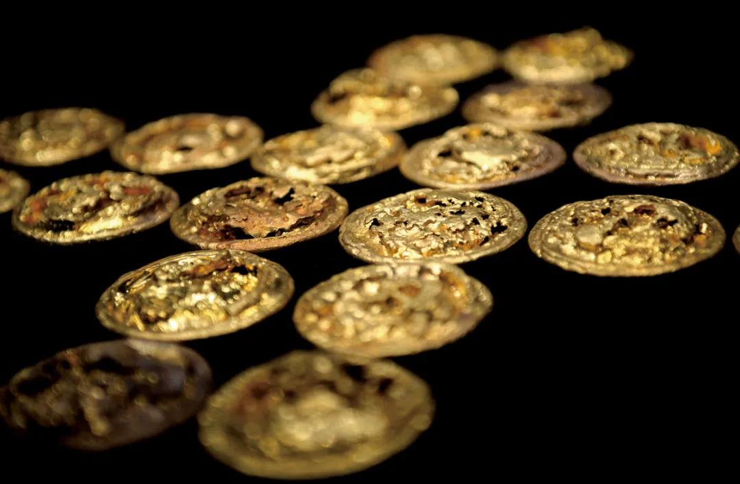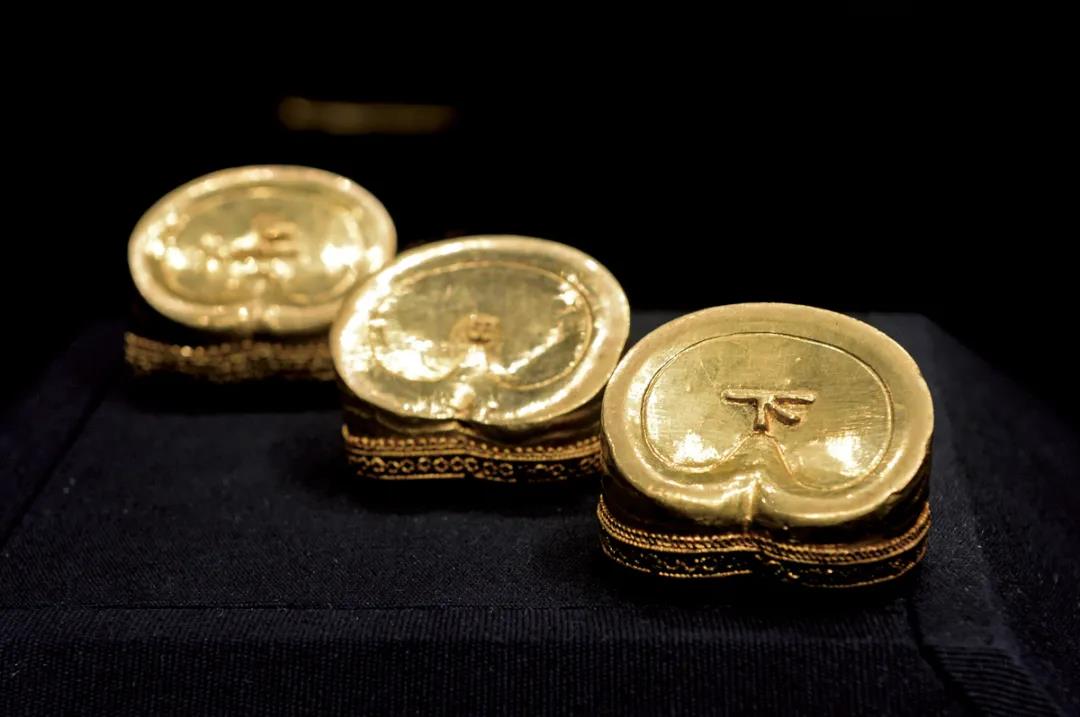 378件馬蹄和麟趾金、金餅、金板的出土是中國漢墓考古史上保存最完整、數量最集中的一次發現。圖為馬蹄金。