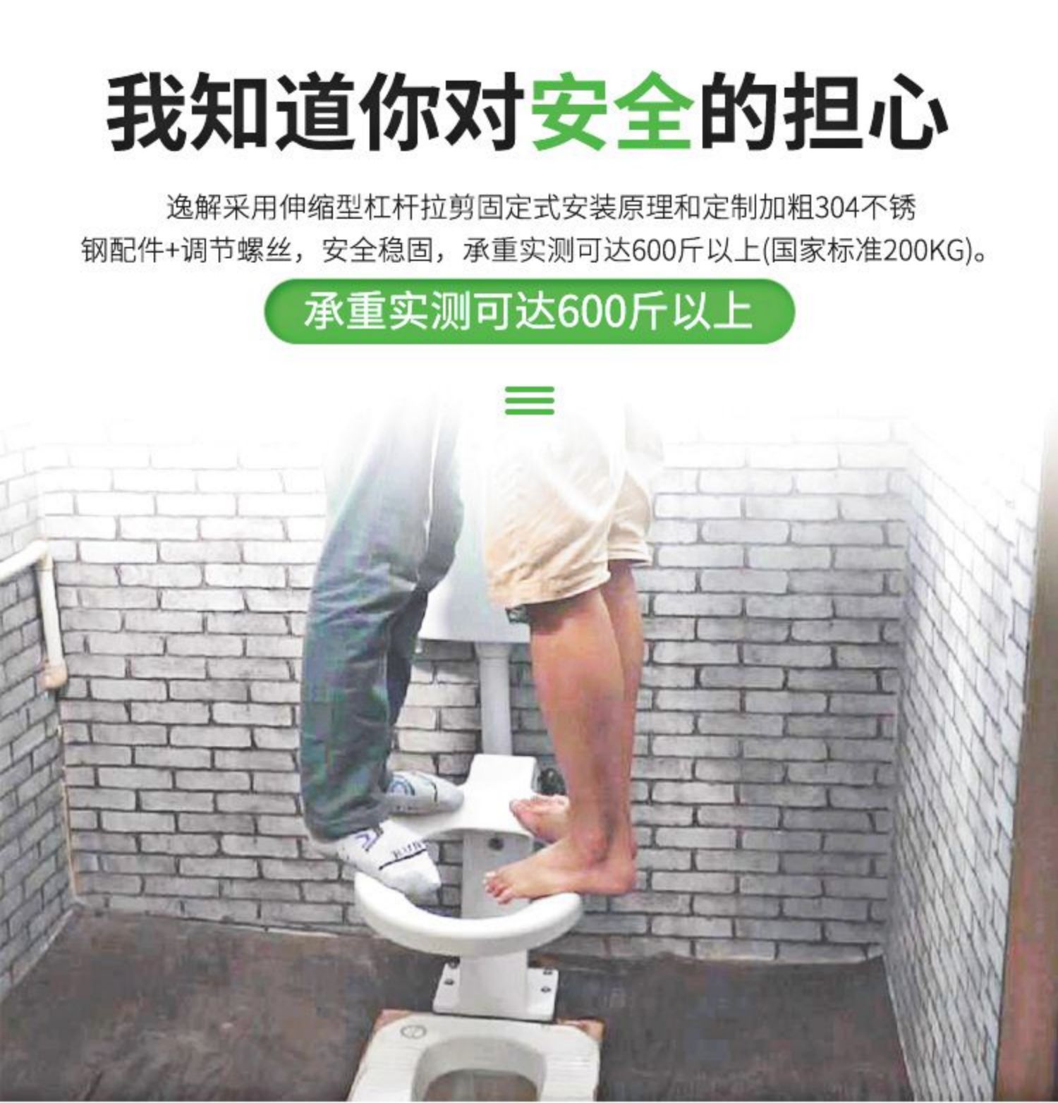 裝置的原理非常簡單,用螺絲直接固定在老式蹲廁的地面和牆身上,標榜免施工、免改造,省時又方便。貨品的描述聲稱廁板可以承重200kg以上,專為孕婦、老人和行動不便人士而設計。不過,網民仍然對其安全性有所顧慮,普遍認為它的承載力不夠,呼籲「肥人勿坐」,否則坐板鉸位斷裂會隨時跌倒,甚至跌斷脊骨,屆時後悔莫及。