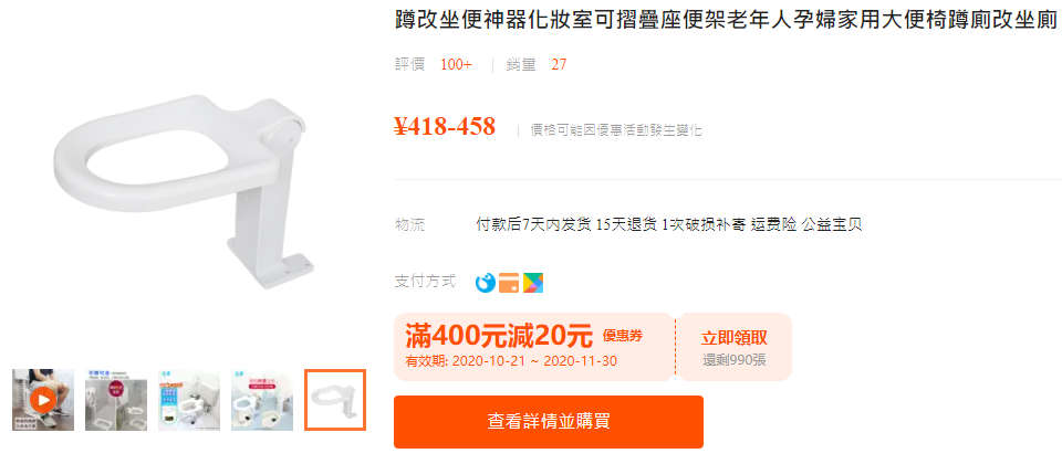【橙訊】近日有網民發現淘寶網出售一款可摺疊座便架,只要加裝在蹲廁上,就能瞬間改為坐廁,引起網絡熱議。