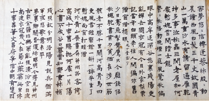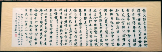 乙卯(1975 年)香港嶺南書院展出橫幅(原作為長卷,此橫幅是後半,此四首詩均是丁亥作品) 圖:香港商務