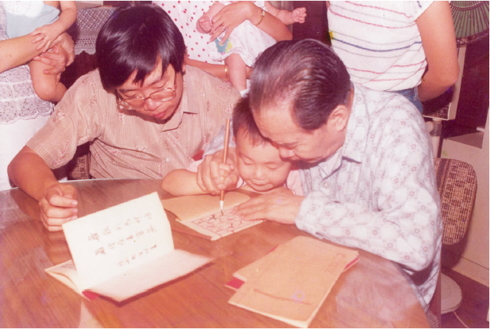 癸亥(1983 年)夏攝於香港太古城寓樓,陳湛銓為孫兒貞信開筆 圖:香港商務