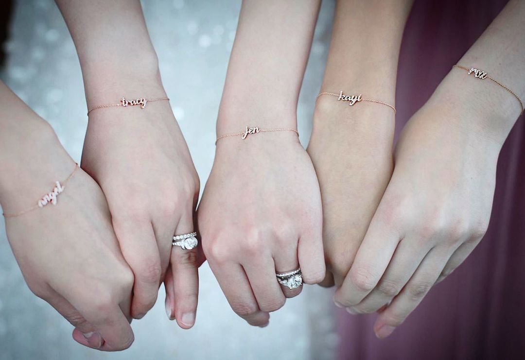 岑杏賢也在社交網貼出與姊妹的手拖手合照,她們手上都戴上有自己英文名的手鏈,岑杏賢留言:「宣讀了誓詞,帶上了結婚戒指,成為妻子。」