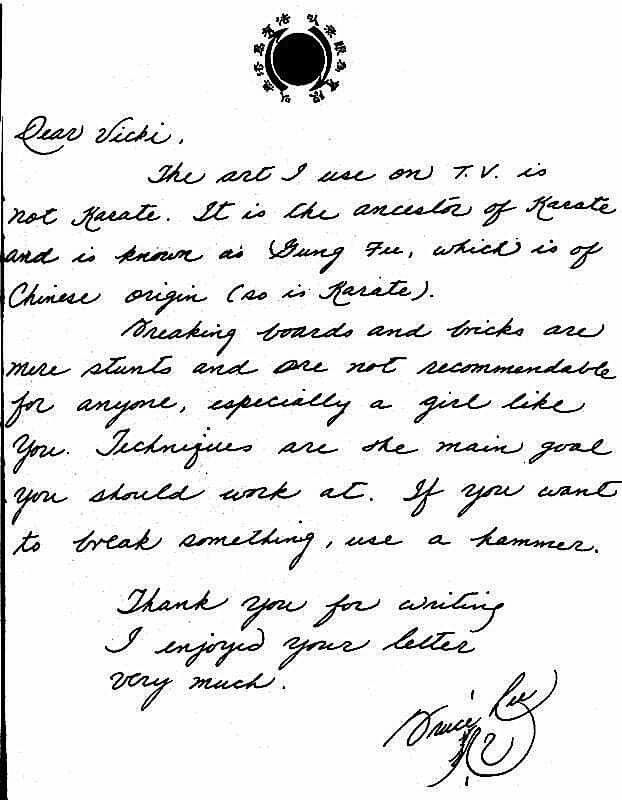 那麽強者也有温文爾雅的一面嗎?他所寫的英文大楷字母,大部分也有裝飾性的筆劃,例如簽名前的一句,英文細楷「d」字如數字「6」的反轉寫法,顯示了他對文化藝術的修養與要求,李小龍對設計與展示有良好的意識,也特別注重細節所帶來的愉悅感。