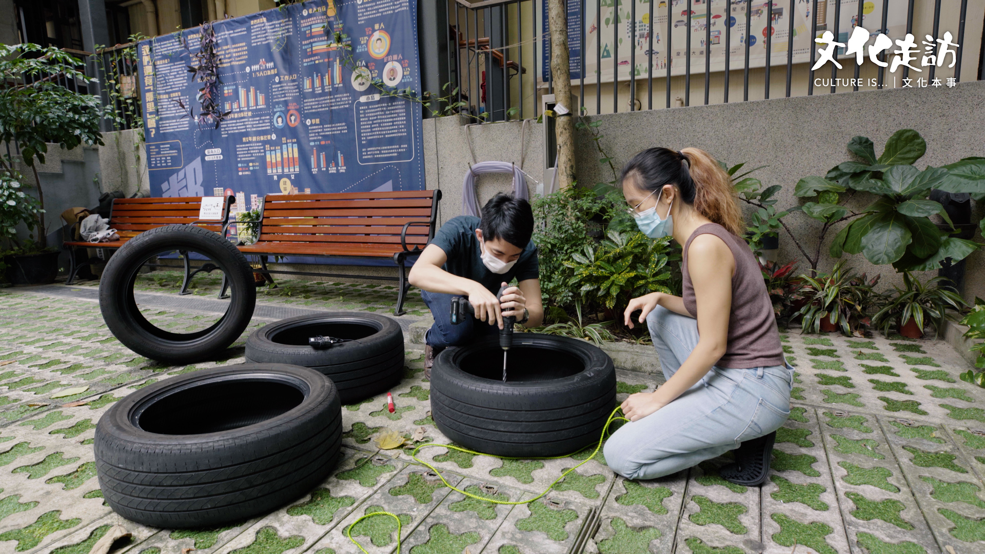 帶著這樣的環保理念,Kevin更開展了許多工作坊,邀請藍屋以及灣仔社區的居民在週末和他一起「透過舊的物件講故事」,在他們手中,舊輪胎成了藍屋空地上供人閒時休息用的座椅、回收洗衣袋化作孩子嬉戲玩耍的帳篷裝置、廢膠樽搖身一變成為聖誕節裝飾用的鳳凰鳥……而在這過程中,又有更多社區的街坊感受到親自建設社區的快樂。可以說,正是這些貢獻自己熱情與才華的好鄰居,共同努力去保障藍屋未來繼續煥發出更強的生命力。
