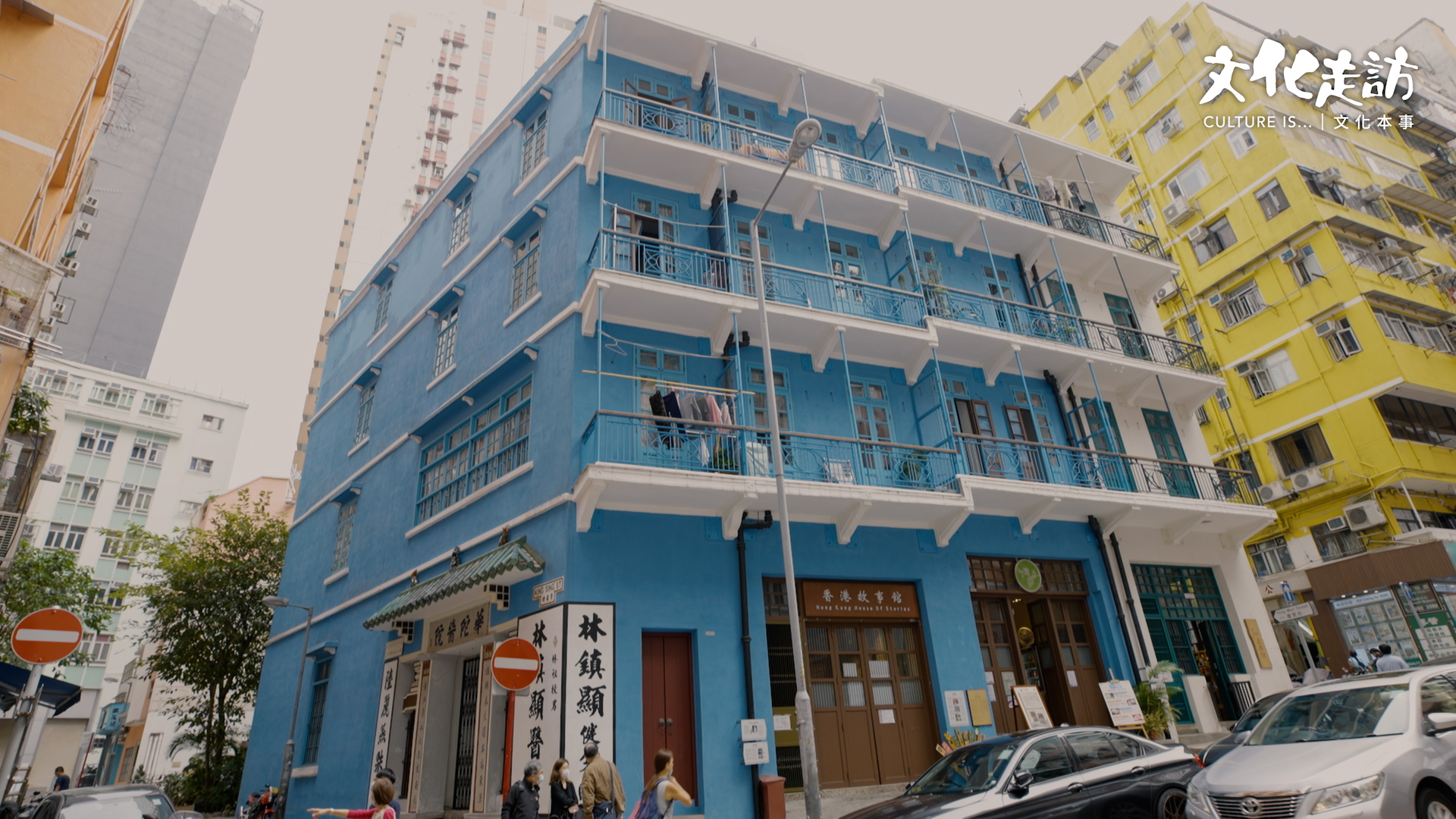 近百年的時光,藍屋的地鋪曾迎來為街坊子弟提供免費教育的「鏡涵義學」,也設立過酒莊、雜貨店以及「鮮魚行商會」,而後黃飛鴻徒弟林世榮後代也曾在此開設武館、跌打醫館;藍屋樓上的住宅單位則見證一個個家庭生息繁衍兩代、三代,而最多的一戶任姓家族,已經在藍屋生活了四代之久。