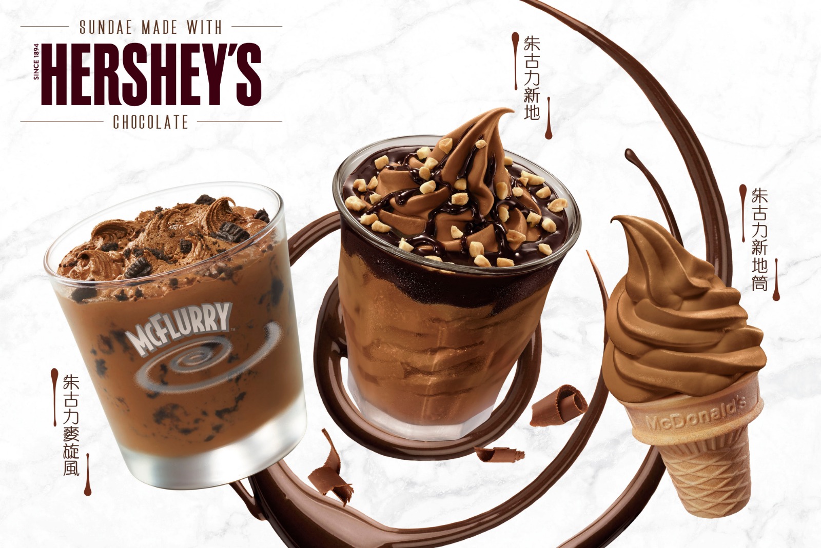 由12月30日起,麥當勞甜品站期間限定「HERSHEY’S朱古力新地甜品」系列,朱古力濃情滋味甜入心。今次分別推出三款朱古力新地甜品,包括:「HERSHEY’S 朱古力(/扭紋)新地筒」、「HERSHEY’S 朱古力(/扭紋)新地」及「HERSHEY’S 朱古力麥旋風」。多重朱古力的滋味誘惑,為你帶來極致的香濃甜蜜體驗。