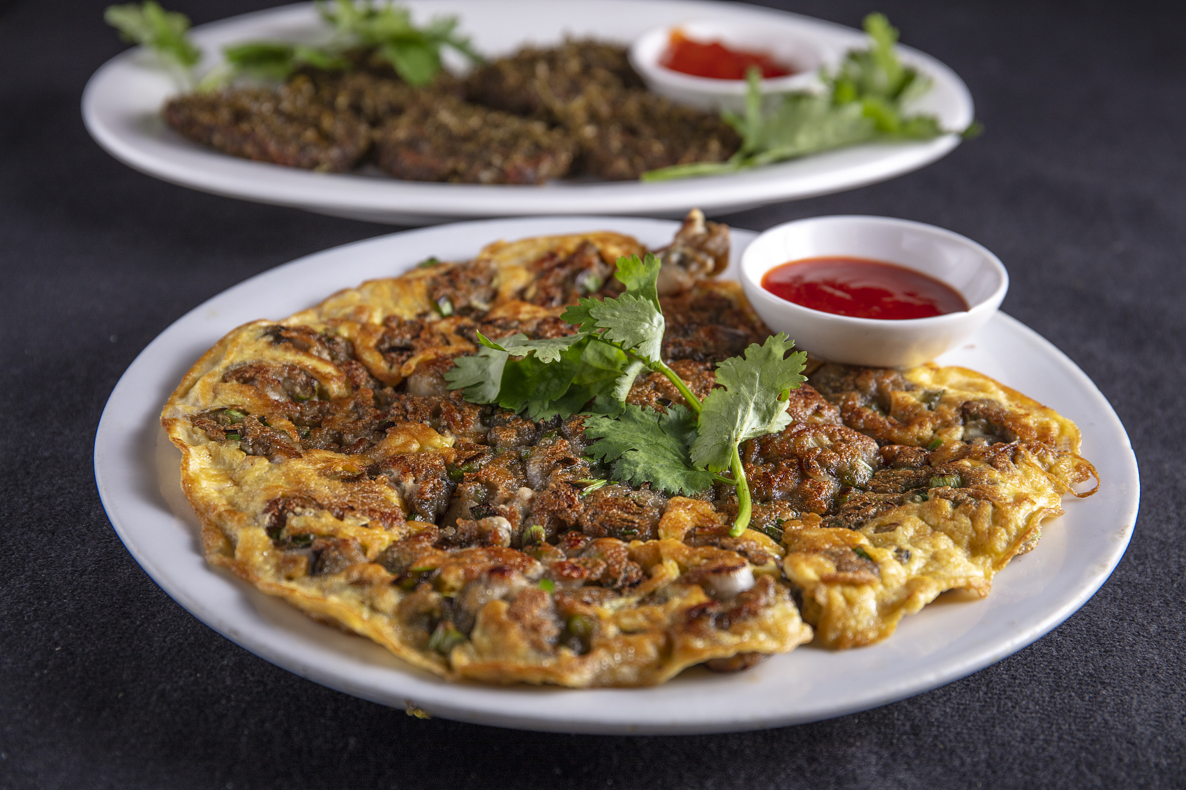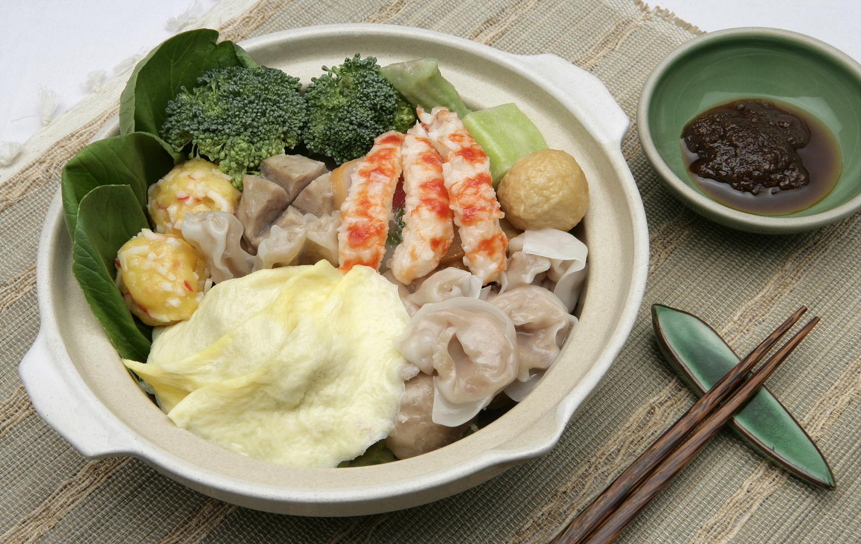 孔夫子說不得其醬不食,潮菜是不得其佐料不食。一道最普通的牛肉丸湯,除了碗裏已撒的魚露、胡椒粉、豬油炸蒜泥 (蓉)、冬菜、小磨香油、芹菜碎或生菜葉,還外加一小碟沙茶醬,供蘸牛肉丸之用。即使潮粵同食的白切雞,佐料也大異其趣;潮菜通常要配上香油、豆醬、魚露、橘油,以及在盤正中撒一把生芫荽。其他各樣大菜上席時,必有不同佐料相配,如生炊龍蝦必配橘油,生炊蟹必配薑末醋,乾燒雁鵝必配梅膏芥末,清燉白鱔、清燉水魚必配紅豉油,醬碟繁多,蔚為大觀。令人眼花繚亂的同時,舌尖繚亂。