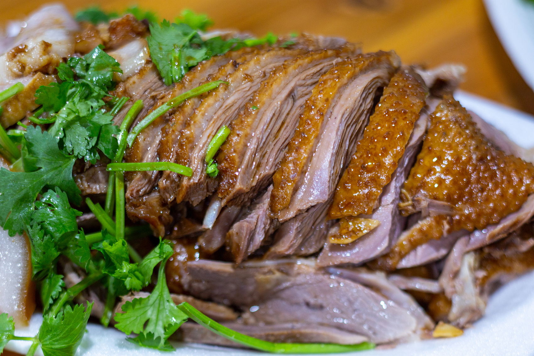 當然,「味出潮州」的味,不僅是鵝之味,更是鹵之味。潮州鹵水,高湯為底,配以二十餘種香料,其中不乏名貴者;還有被稱為潮州薑的南薑和引自東南亞的香茅等獨門配方。潮州鹵水,常被視為潮味祕籍,外人是難以學精鹵水調製的。近年來,潮籍美食達人蔡昊倡導用英格蘭出產的單一麥芽威士忌,如三十年的格蘭傑(GLENMORANGIE)來配鹵獅頭鵝頭,那當然是人間美味,鵝的骨香、酒的果香和調料的辛香配合得天衣無縫,讓人回味無窮。但這種高年份的酒已經是天價,鹵出來的鵝頭更是「此鵝只應天上有,人間能得幾回嚐」。一「頭」得道,「肝腸」升天。在鹵水鵝頭的帶動下,潮州鹵水鵝腸、鵝肝,也成了席上之珍;整得好的鵝肝,還可叫板法國鵝肝呢!鮑汁鵝掌或者遼參鵝掌,那更是經典名菜了;饒平的鵝血湯,配以豆芽、酸菜、蔥頭,極其嫩滑可口。