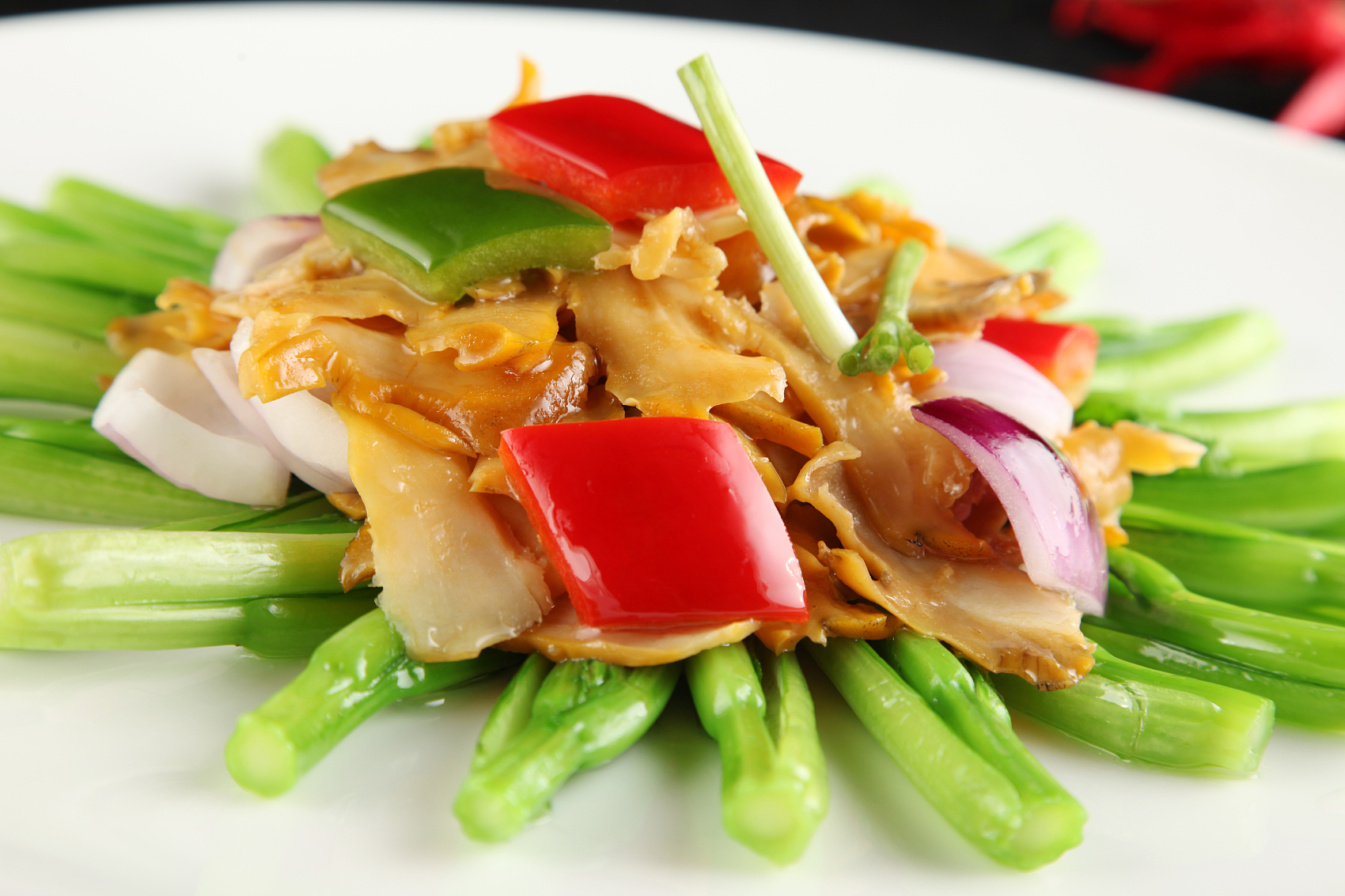作者曾去潮州採訪調研,在千禧投資公司蔡偉群先生的一次午宴上,許永強師傅當堂示範,一隻大響螺,切出十來片,焯出來,視熟如生,吃起來,鮮美脆嫩、爽口多汁,真是至味;一片一千,不虛食也。吃響螺,還有一點講究,那就是如最早征服羊城的潮菜大師朱彪初在《潮州菜譜》中所謂:「螺尾最香,一定要擺上。如食客見無螺尾,食後就不付錢,這是潮州人的規矩。」白焯之外,還有一種火腿燒螺的吃法,是將響螺連殼在炭火上活燒,目的是讓響螺吐盡黏液、去除異味,稱為洗螺。然後才灌入火腿末、上湯、香料等,直烤至醬汁收乾,才將收縮離殼的螺肉取出,切片擺盤。燒得好的響螺,吃起來就像溏心乾鮑,餘香滿口。這炭燒響螺更難做,市面上幾近失傳,蔡瀾當年到汕頭,還是通過張新民才請得美食大師林自然出來演示了一番。