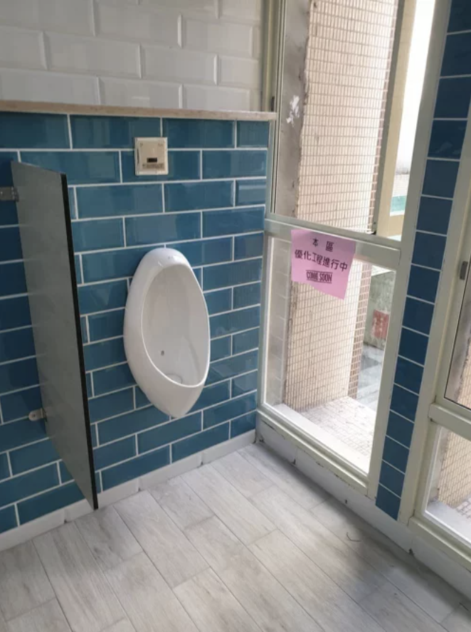 【橙訊】雖然裝修工程常會出現令人無語的設計,但也不至於興建「透明」廁所吧?位於台北的和平高中早前耗費超過600萬元新台幣(折合165萬港元),進行4個樓層廁所的裝修工程,怎料驗收當日卻發現,左右兩排廁所的最後一格竟是一面透明玻璃,無遮無掩下,路下途人自然是一覽無遺。學校恐防學生如廁會春光外洩,已經立即封鎖廁所,並要求廠商馬上修正問題。