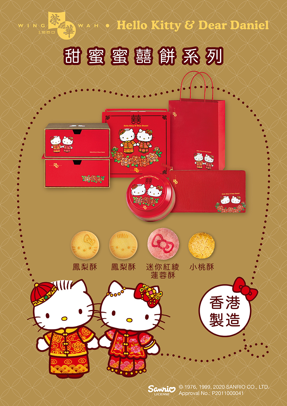 香港榮華餅家與Sanrio攜手呈獻「Hello Kitty & Dear Daniel甜蜜蜜囍餅」系列,即日起已於指定分店發售,為一眾新人送上最甜蜜的祝福。
