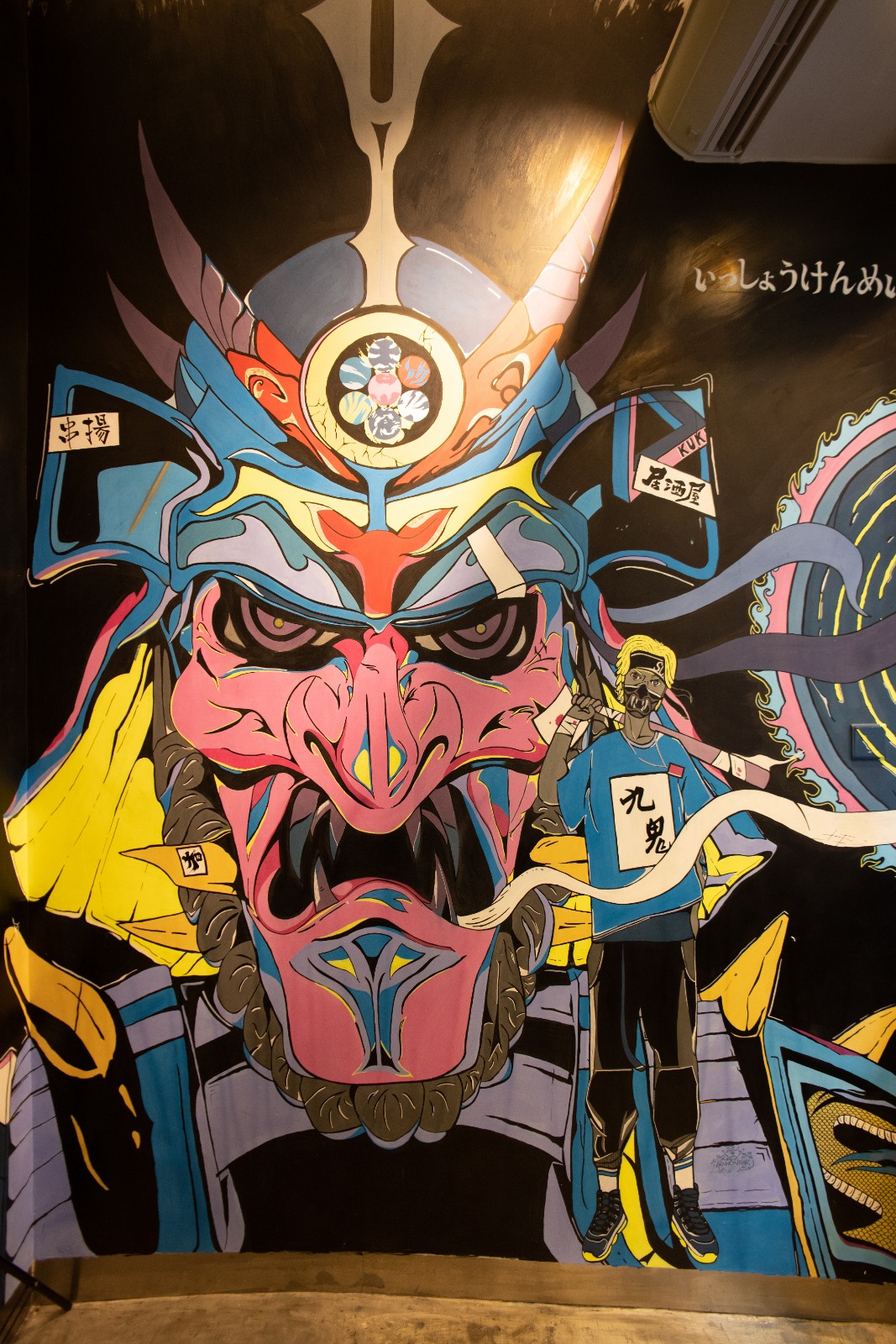 餐廳以日本戰國時代著名武將家族為名,同時以武士主題作為裝潢設計。以現代街頭塗鴉手法重新演譯武士壁畫,餐廳的正中間亦有一幅以霓虹燈製成的武士頭盔裝飾,營造出時尚型格的日本居酒屋感覺。
