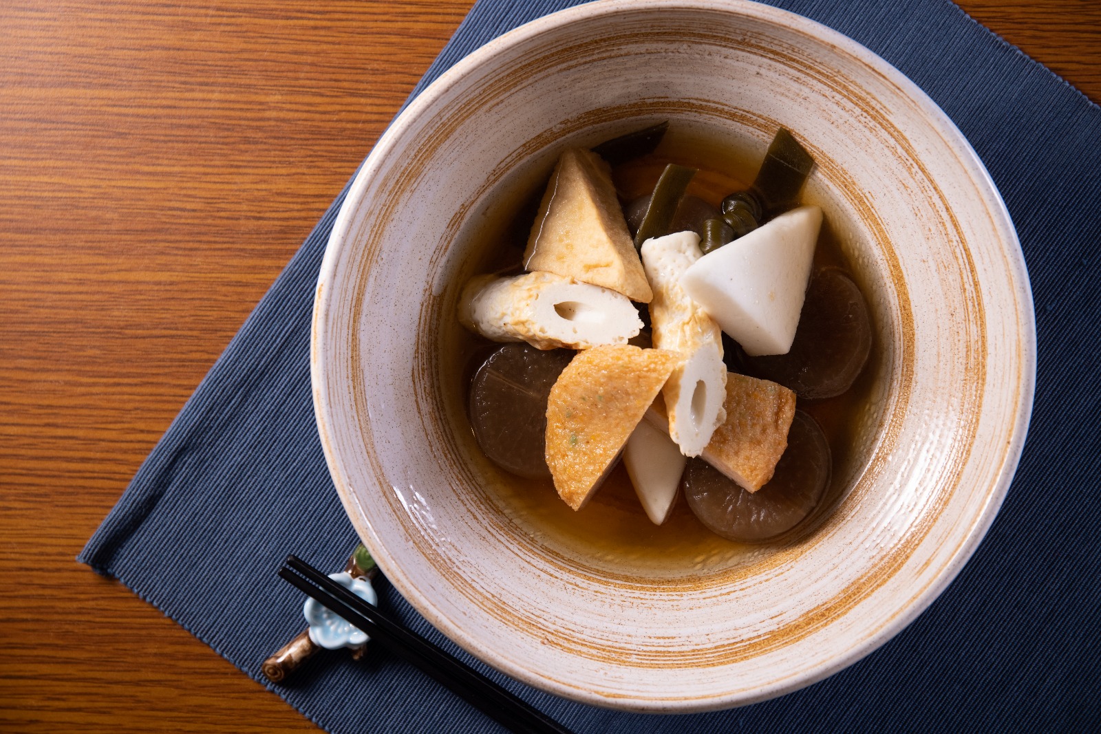 「九鬼」提供兩款不同的關東煮湯底,包括傳統的昆布湯及以時令鮮魚熬成的湯底,拌以經濃湯浸煮的白魚板、厚楊豆腐及竹輪等,絕對是醒酒暖胃之選。