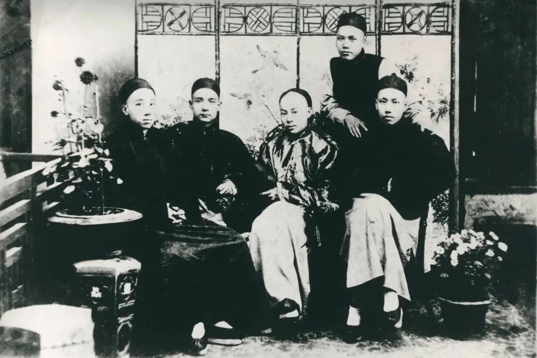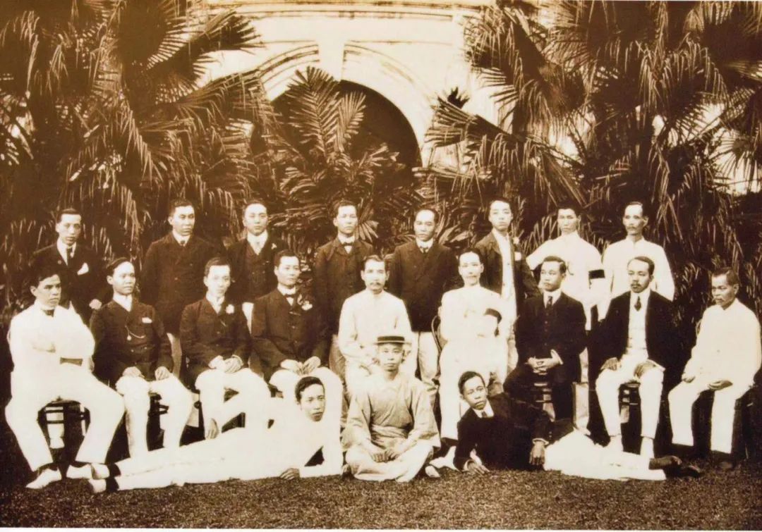 1907年前後,尢列(右四)與孫中山及其他同盟會新加坡分會會員攝於晚晴園。