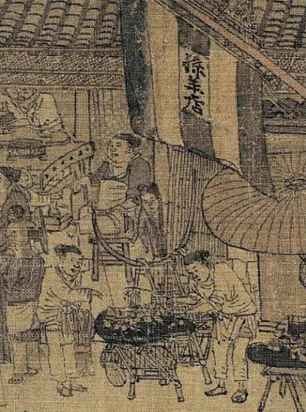 《清明上河圖》裡正繪畫出這樣一個情景:孫羊正店旁邊正是一個用馬頭竹籃賣花的花攤,花朵就鋪排在竹馬背上。作為市聲之一的賣花聲大約最易牽動思緒,詩詞詠及者因此最多,呈現的細節更多一點詩思迴旋的體驗和品味。比如蔣捷的詞《昭君怨·賣花人》:「擔子挑春雖小,白白紅紅都好。賣過巷東家,巷西家。簾外一聲聲叫,簾裡鴉鬟入報。問道買梅花,買桃花。」旅店用日送鮮花的方式慰藉客中情懷,大約也已成為當時一種日常化的服務。比如陳棨的《店翁送花》一首:「店翁排日送春花,老去情懷感物華。翁欲殷勤留客住,客因花惱轉思家。」本來是想借用送鮮花的方式讓客人多住幾天,但是客人反而因為看到花的時候也想到自己家裡的花,所以「客因花惱轉思家」。