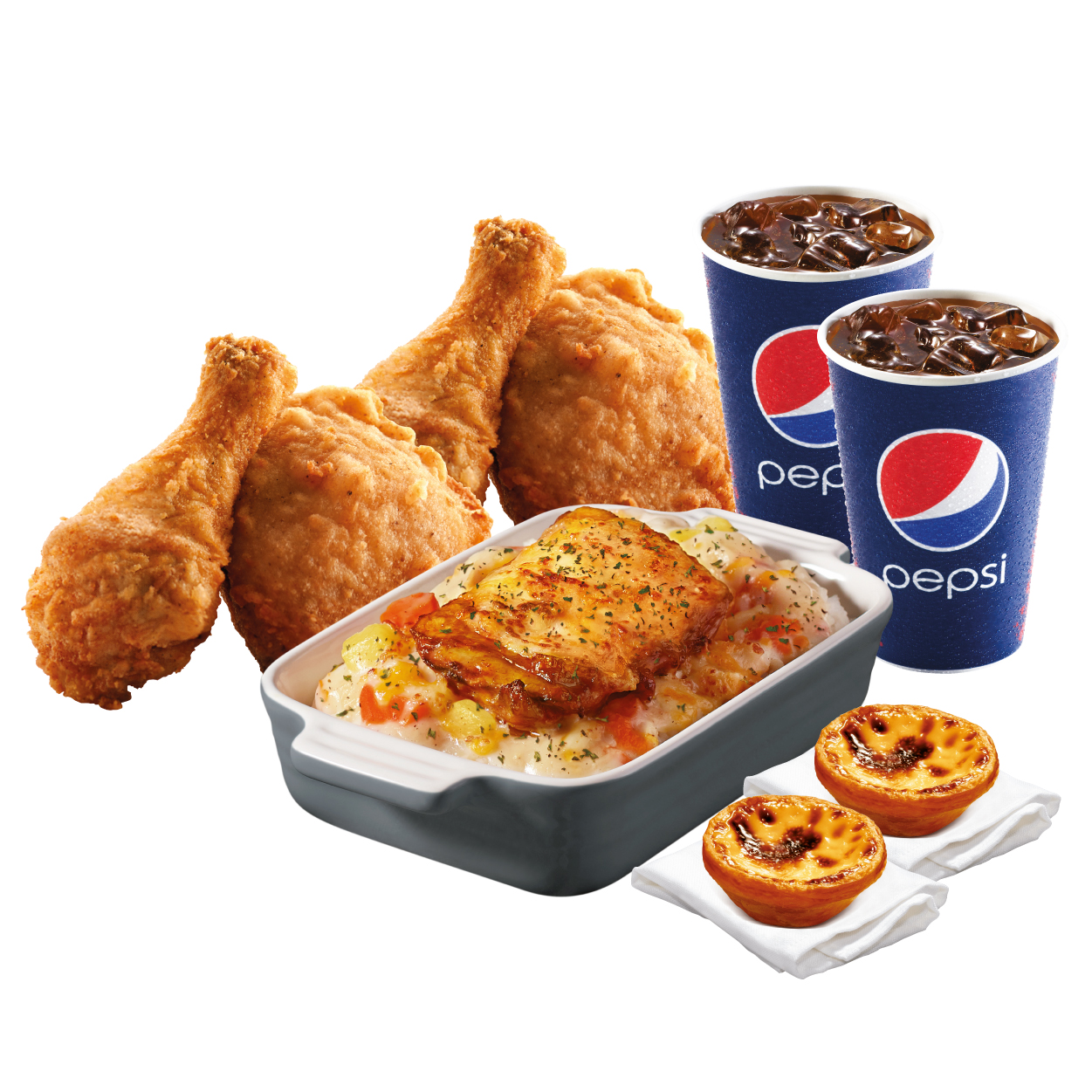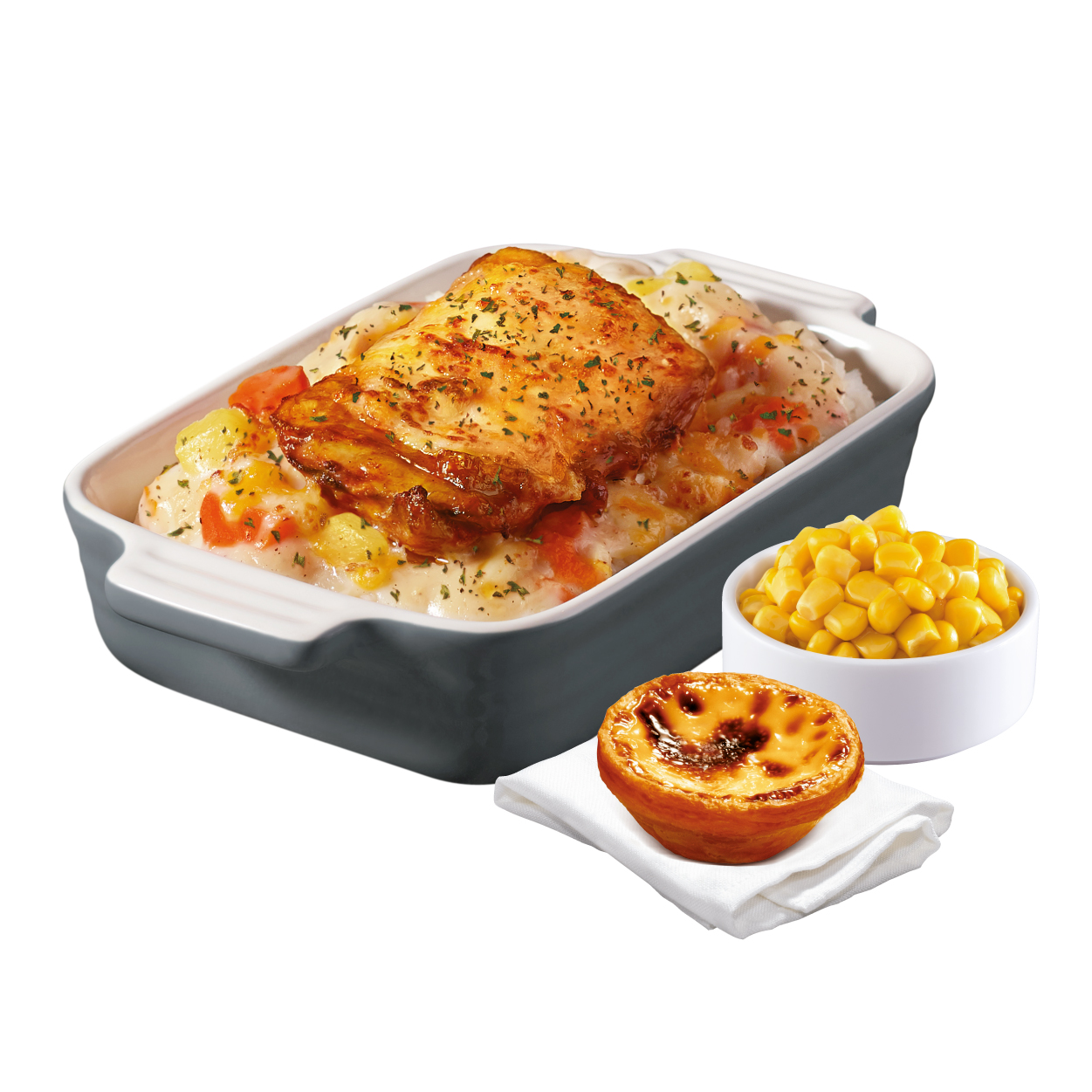 「燒雞扒雞皇芝士焗飯」單點:堂食港幣$43起;好味速遞港幣$69;好味速遞加配價:港幣$43。堂食套餐價配飲品:港幣$45起。好味速遞套餐配粟米杯及經典葡撻:港幣$79。
