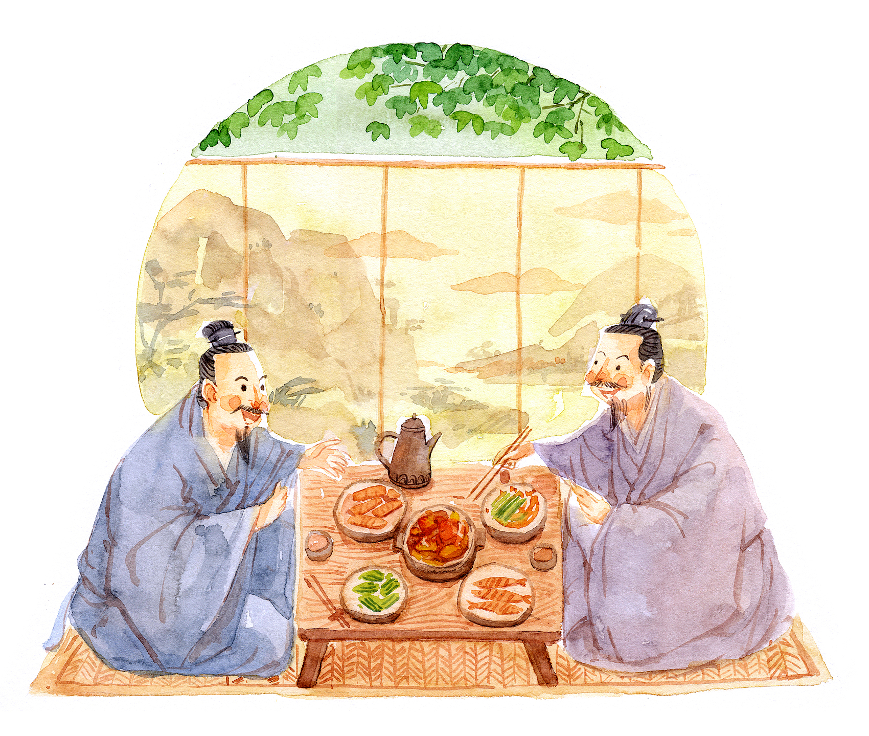 古人在座次安排上也十分講究。在堂中會客,則以面朝南的座位為尊。座次的尊卑順序為南向(面朝南)、西向、東向、北向。主客雙雙落座後,主人命人向客人敬茶,在之後的談話過程中,主賓雙方都要注意禮節,儀表要端莊,不得有傲慢、不莊重的舉止。