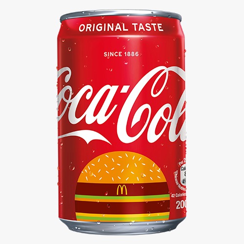 為了慶祝Big Mac推出全新的「煙肉巨無霸」,香港麥當勞首度與「可口可樂」攜手設計出印有全新巨無霸圖案的「可口可樂」迷你罐。麥當勞特意將巨無霸圖案印於經典紅色可樂罐上,大玩新意思。今次兩大品牌經典代表作破天荒聯乘,迷你罐容量為200毫升,別具收藏價值。