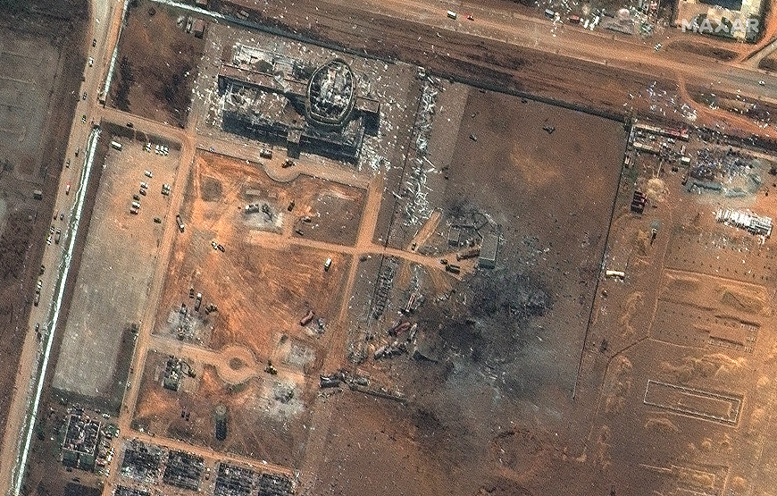 赤道幾內亞巴塔市爆炸現場航拍圖。