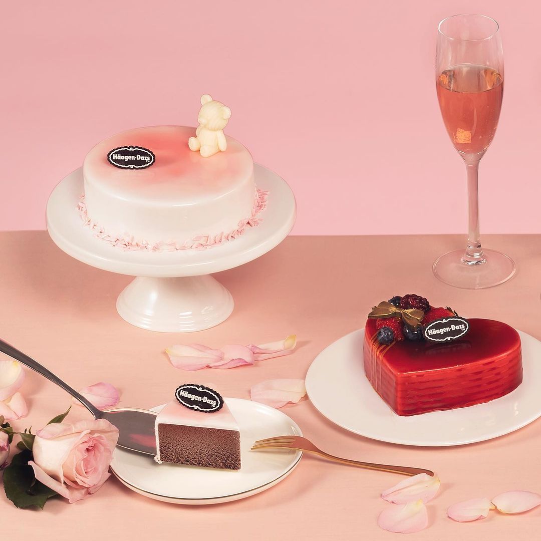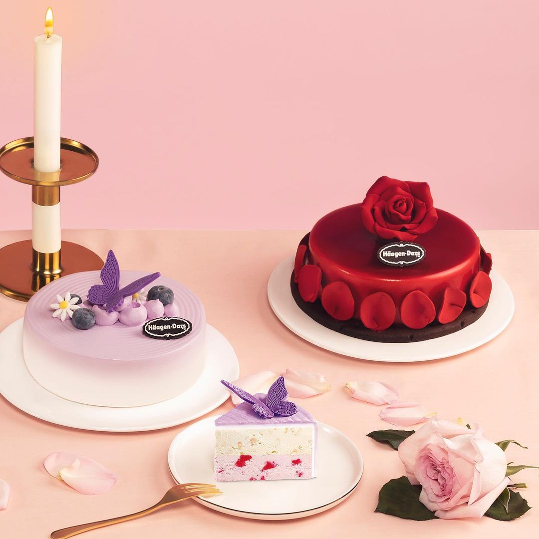 Häagen Dazs亦為大家準備了全新的浪漫風格雪糕蛋糕,包括「紫花園(夏威夷果仁雪糕、士多啤梨雪糕)」、「玫瑰綻放(曲奇雲呢拿雪糕、士多啤梨雪糕)」、「浪漫熊粉(比利時朱古力雪糕)」及「甜夢旋律(黑朱古力杏仁雪糕、士多啤梨雪糕、曲奇雲呢拿雪糕)」。