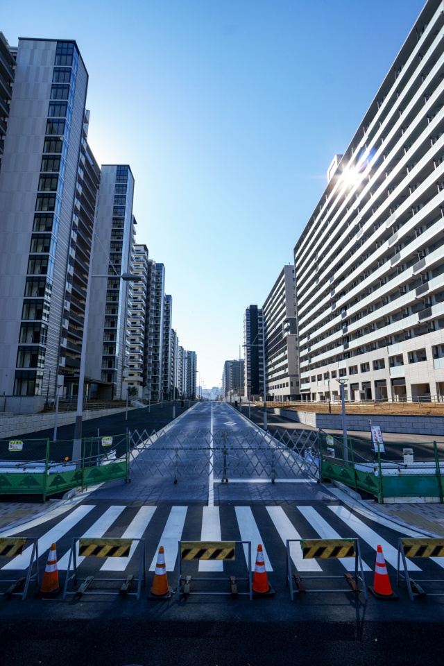 2021年東京奧運於東京的人工島「晴海」建設好了大型選手村。日本Twitter網民@liner104早前到選手村附近拍照,指出「建設好的選手村沒有一個人入住」,「立入禁止」的警告牌更是有肅殺的感覺。