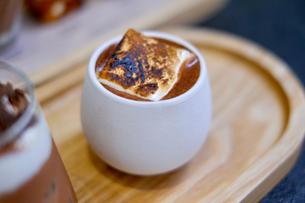 「烤棉花糖朱古力撻」以微焦的烤棉花糖配搭朱古力撻底,軟糯中帶點脆口。