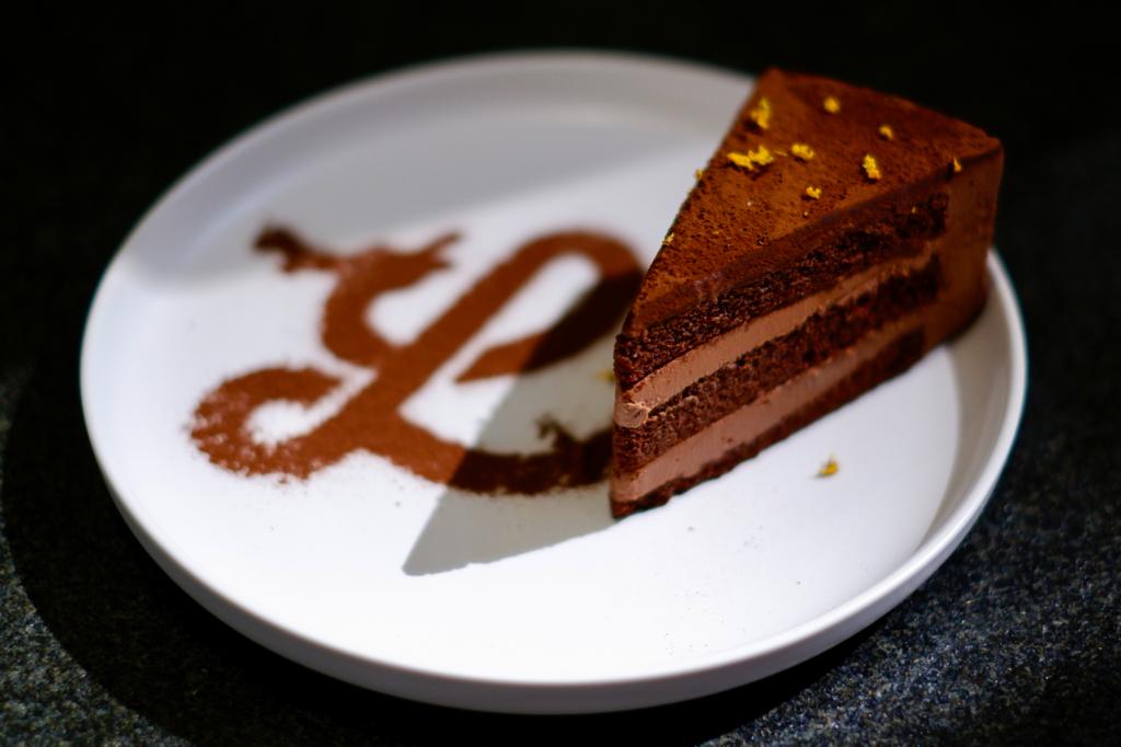 「三重特濃朱古力蛋糕」同樣主要以70%泰國純黑朱古力醬而製,邪惡的朱古力蛋糕、朱古力醬及可可粉層層相間,朱古力味濃密卻不膩。加上面層的少許食用花瓣,更添花香。