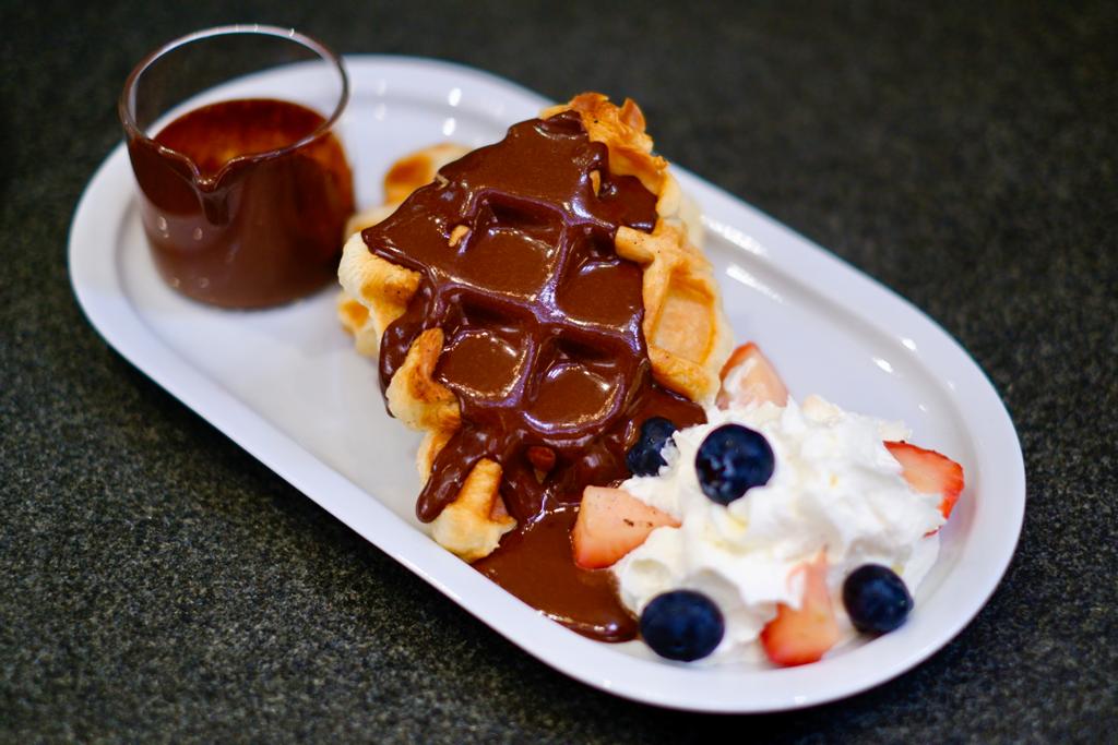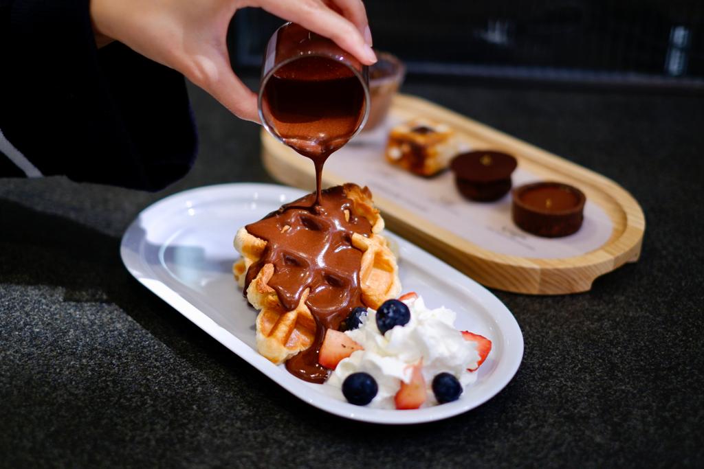 「CACAO酥皮窩夫」反傳統將把法式牛角包麵糰放於窩夫機,特別烘焗成酥皮窩夫,口感軟糯微脆。淋上迷人的朱古力醬,與鮮忌廉及鮮果同食層次更豐富。