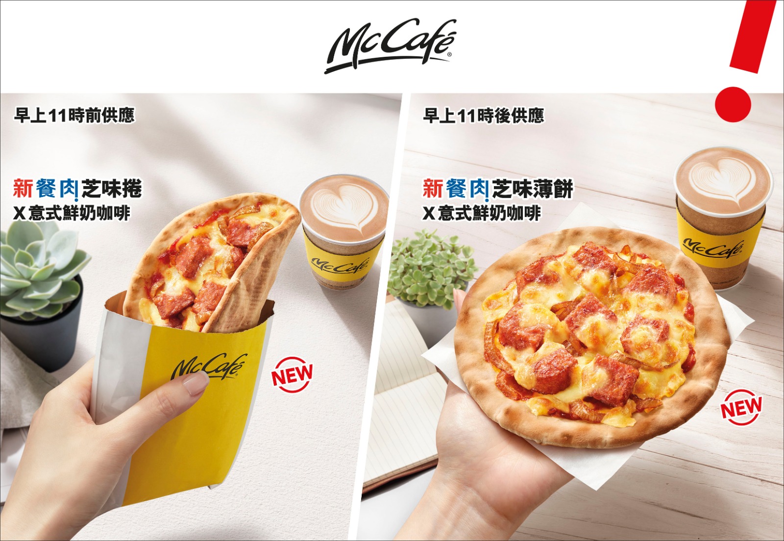 同日起,McCafé亦推出全新「新餐肉芝味捲」(上午11時前供應)及「新餐肉芝味薄餅」(上午11時後供應)。當厚切新餐肉配上香濃芝士,誘惑滋味進一步升級。McCafé特意為上班族及學生帶來「新餐肉芝味捲」,內含香炒洋蔥、濃郁芝士及厚切新餐肉粒,搭配酸甜番茄醬,每口盡享多重滋味。