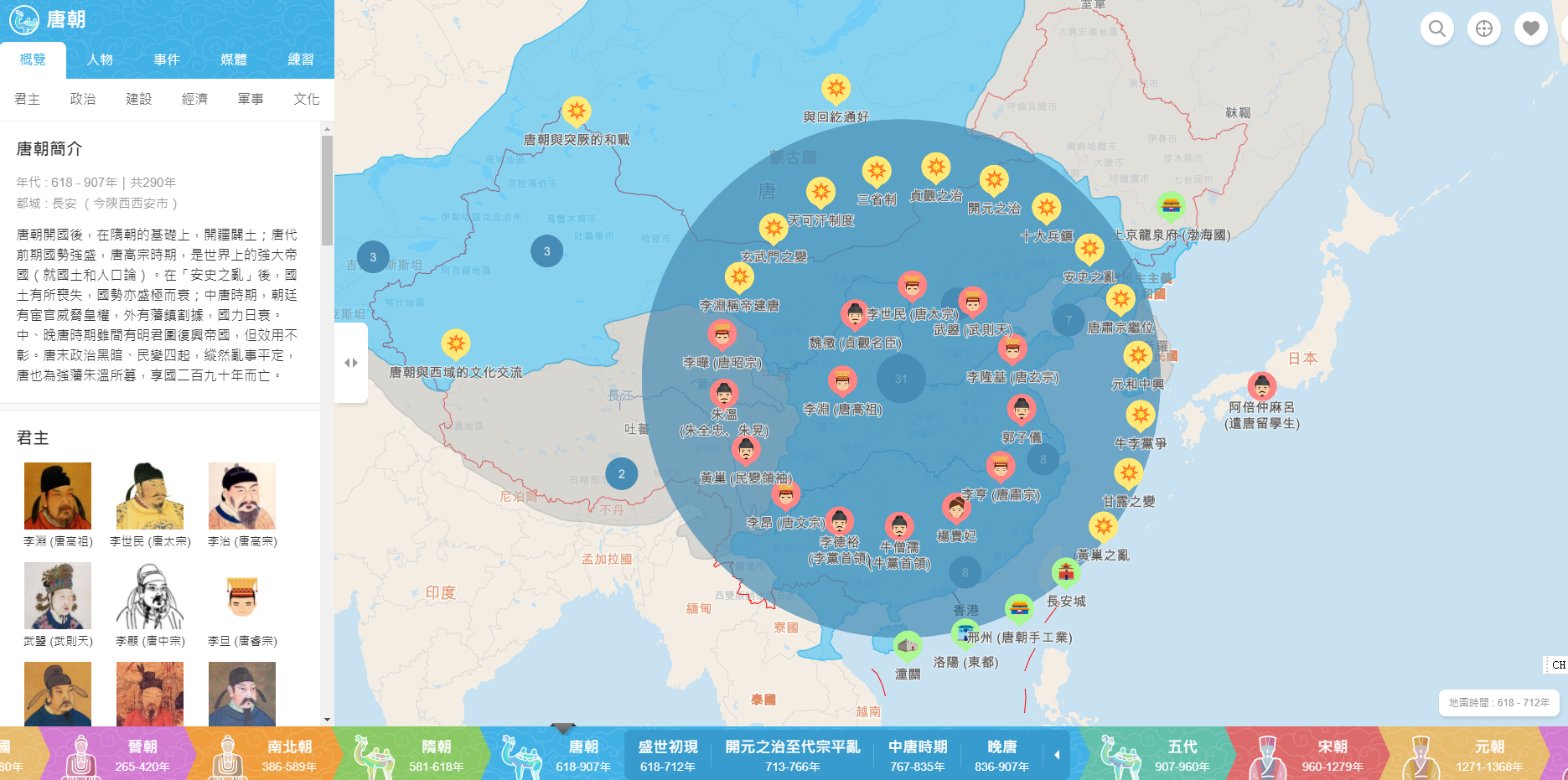 「中史通」把重要歷史事件、人物座標、圖例匯入現今地圖,套疊歷史版圖圖層。學生可藉著古今對比,認識當年中國和史事發生的地理位置,借古鑑今,增加對歷史的密切感,培養對祖國的感情,承傳中華文化。