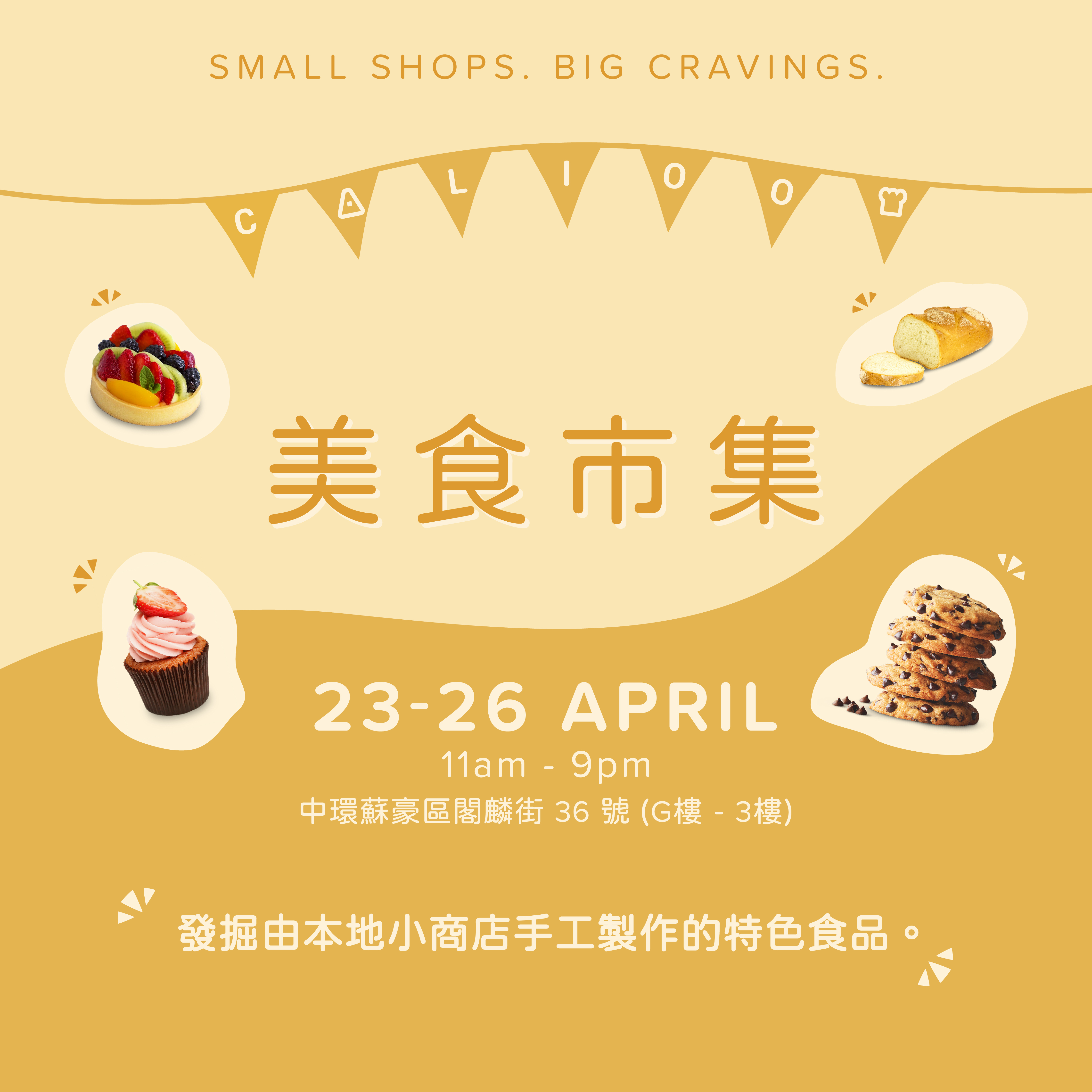 Calioo成立的第一炮,4月23日至26日就於中環開設期間限定實體市集,現場超過 30 多個攤位,雲集眾多小店及本地隱世烘培好手,包括蛋糕、曲奇餅、酥餅、麵包、特色醬料、中式糕點及地道美食,甚至有寵物享用的零食。大家可以免費入場,更可參與不同工作坊,又玩又食。