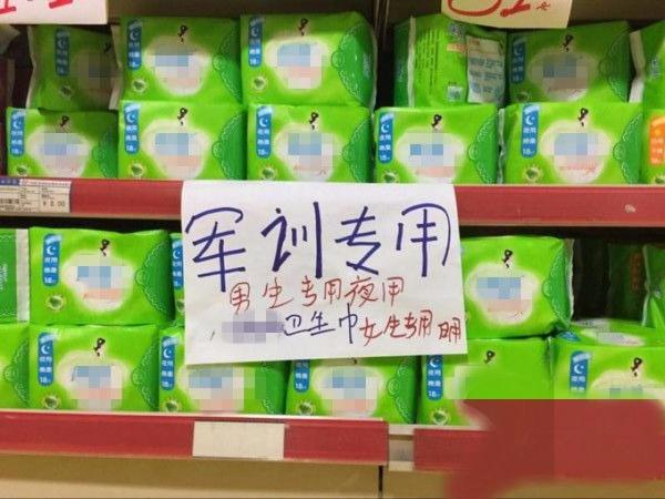 【橙訊】近日內地各高校軍訓正在緊張開展,不少校園超市出售的「軍訓專用」衛生巾得到了新生追捧。前去購買衛生巾的男生絡繹不絕,部分校園超市還出現衛生巾被搶光的現象。
