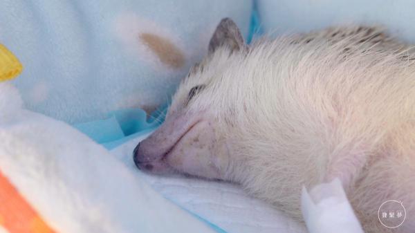 「上年的12月29日 7時多媽媽叫醒了我,說菠蘿釘睡了在籠外,反不了起身,那時候牠已經打側了身,手和鼻都受了傷,就是起不了身,到了今年的年頭 就肯定了牠有搖擺症」。現時4歲的菠蘿釘是主人Ruth從網上領養的,以家養刺蝟3-5歲的壽命來說,已經不年輕,除了搖擺症外,背部和手指也確診了癌症。