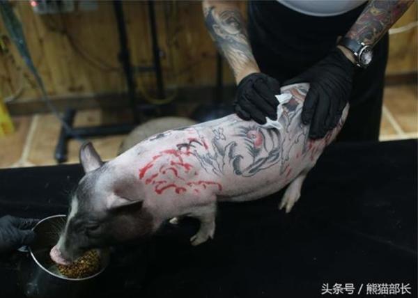 【橙訊】西安一名男紋身師因希望其寵物豬成為網紅,與兩名紋身師合作,花了兩小時在豬隻背上紋出大範圍的鬼神圖案,有網民批評有違自然,質疑他想將動物當作搖錢樹。