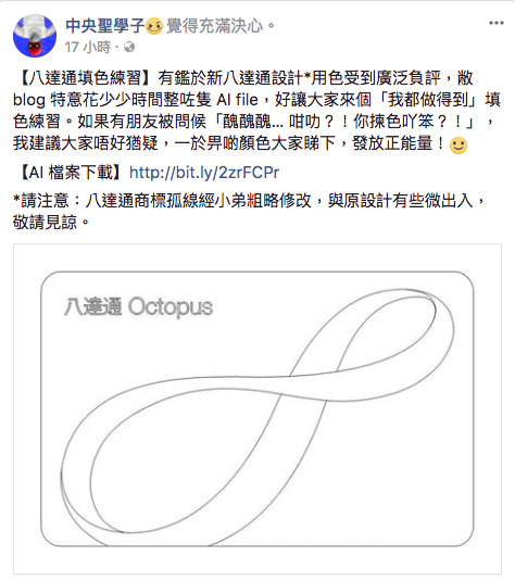 10日後,facebook 專頁「中央聖學子」發起了一個八達通填色練習,更附上未上色的八達通AI檔案。
