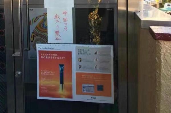 微博名為「日本美食資訊」的微博賬號在24日下午刊發一則微博,表示在日本愛知縣半田市乙川的一家POLA分店門外,貼着寫有「禁止中國人內進」的告示,並表示該告示一起在日華人的不滿,又表示,POLA之所以近年收益大增,全賴在日華人協助推高營銷,在中國打響品牌知名度,無法接受該店舖「過橋抽板」以及歧視的行為。