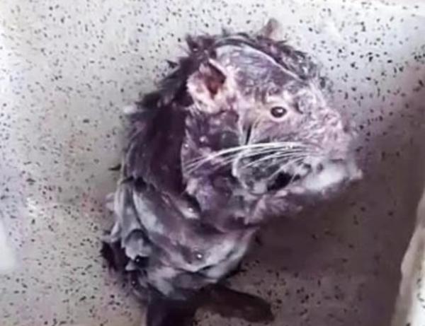 從一段攝於秘魯的片段可見,一隻老鼠站在排水口附近,不斷搓著身上的泡,就像人類洗澡的模樣,吸引上千萬網民觀看。