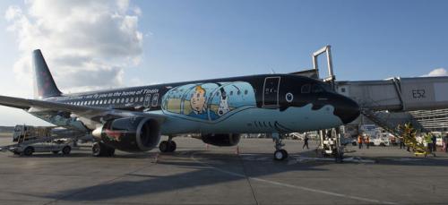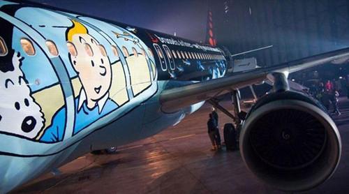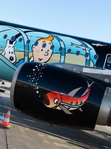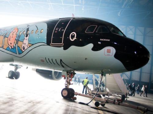 比利時著名《丁丁歷險記》的彩繪飛機日前正式首航。整架客機以海洋世界為題,A320機身變成37公尺長的黑鯊,有丁丁與米路探頭往外看,更寫住「我們帶你飛往丁丁的國度。」。