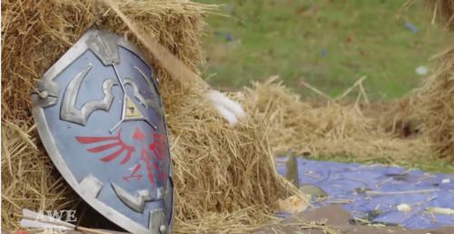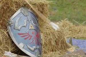 以打造動漫、遊戲中武器成名的「MAN AT ARMS」,今次重現的武器是,來自任天堂殿堂級作品《薩爾達傳說》中主角「林克(Link)」的經典裝備,海拉爾之盾。團隊還特地以弓箭測試海拉爾之盾的防禦力。
