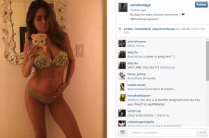 今年30歲的洛杉磯模特兒Sarah Stage原本就熱愛運動,擁有超級魔鬼身材,自從懷孕後,也開始頻繁在Instagram上傳自拍照來記錄懷胎歷程,並喜歡與網友分享日常飲食與健身心得,她不受懷孕影響,很仔細計算熱量的攝取與維持每日運動的習慣,雖然也會偶而大啖起司漢堡等高熱量食物,但奉行健康飲食的她,仍然保持讓人難以置信的好身材!