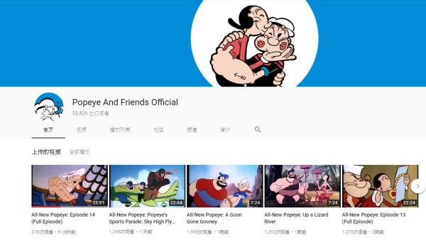 目前在「Popeye and Friends Official」頻道上已經上傳了一些經典的《大力水手》動畫,在看到新作前,不妨先去溫習一下吧。