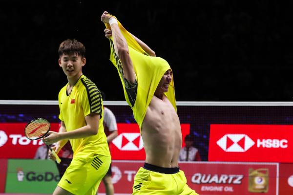 湯姆斯盃日前進入決賽階段,中國男雙代表李俊慧與劉雨辰在準決賽中,以3比1力壓印尼代表哈珊及塞提亞萬,順利帶領中國進入決賽。賽後李俊慧難掩興奮之情,想當場脫衣慶祝,惟連續嘗試2次後,球衣只能脫到一半,卻卡在頭部無法脫下,只能顯示衣料彈力十足。