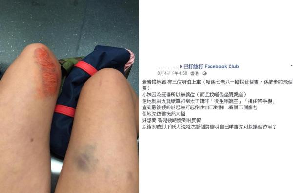 少女因為冇讓座畀三個老伯「單打」(Facebook群組「巴打絲打Facebook Club」圖片)