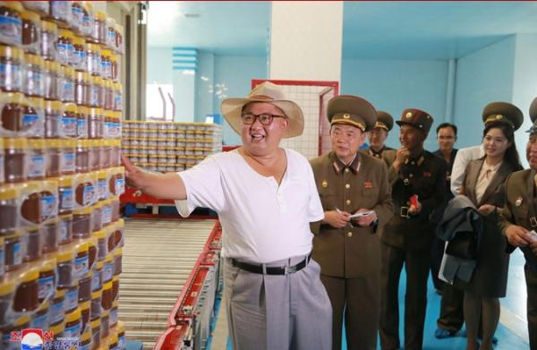 據官方放出的照片顯示,金正恩帶上草帽、穿上「阿伯底衫」,以一身貼地氣造型視察工廠。他指出,該工廠開拓北韓的海鮮醬加工業,並且「走前人未走過的路」,因此相關部門要積極配合,提高質量。他又要求工廠內外環境要清潔,保證無污染源頭。