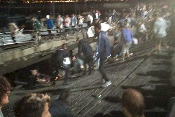 【橙訊】西班牙一個音樂節發生嚴重意外,場內的木製平台突然倒塌,增至超過310人受傷,其中5人傷勢嚴重,但並無生命危險。
