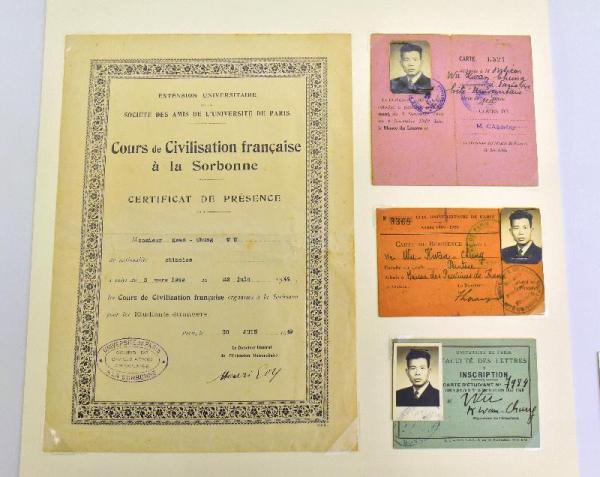 吳冠中於一九四七至一九五○年留學巴黎時所用的證件及獲發的證書 圖:政府新聞處