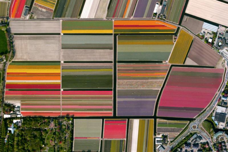 7、位於荷蘭利瑟的鬱金香花田。花農們為紀念荷蘭的藝術大師蒙德里安的誕辰而精心製作的彩色地毯般的鬱金香花田。