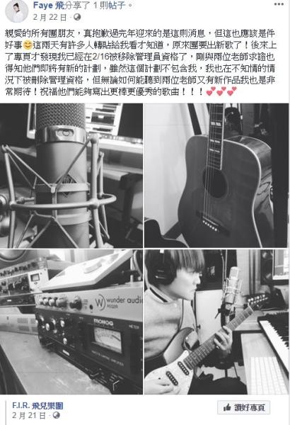 然而,今年2月起便有Faye「被退團」傳聞,Faye更回應稱突然被取消飛兒樂隊社交網站專頁管理員身份。她表示,面對她的質問,其他人僅表明「因為有新的計劃」,並未提前告知她。