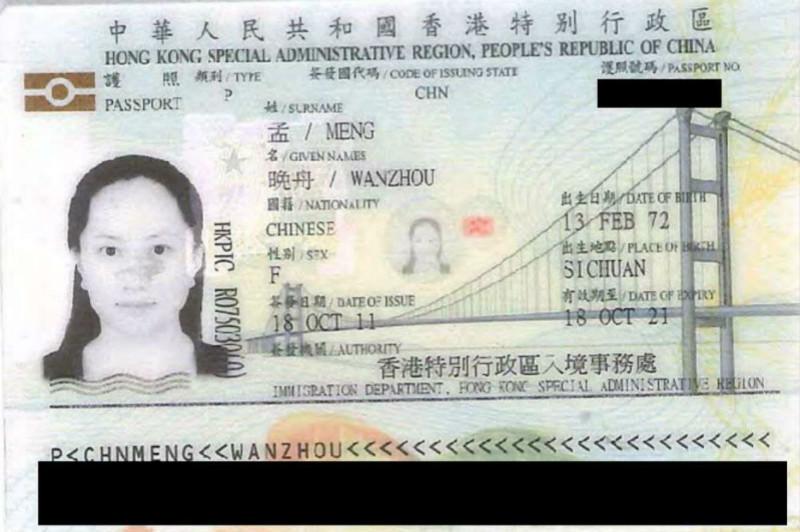 【橙訊】在加拿大轉機時被拘押的華為副董事長兼首席財務官(CFO)孟晚舟,第二日保釋聆訊星期一(10日)在卑詩省最高法院續審。一份美國司法部文件曾揭示孟晚舟至少有3本香港特區護照,其中一本在今日聆訊中曝光,顯示有效期至2021年10月。